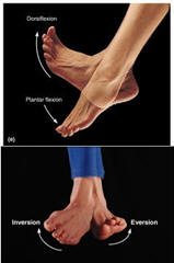 Inversion and eversion refer to movements that tilt the sole of the foot away from (eversion) or towards (inversion) the midline of the body. Range of motion:  Inversion 20-30°, eversion 5-15°.